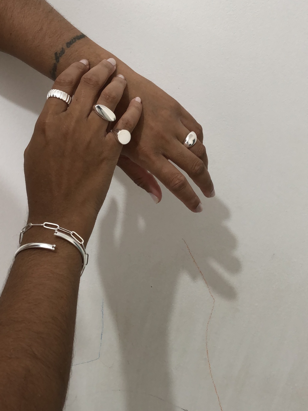 Bracelete leve e moderno, perfeito para um mix com pulseiras e anéis.