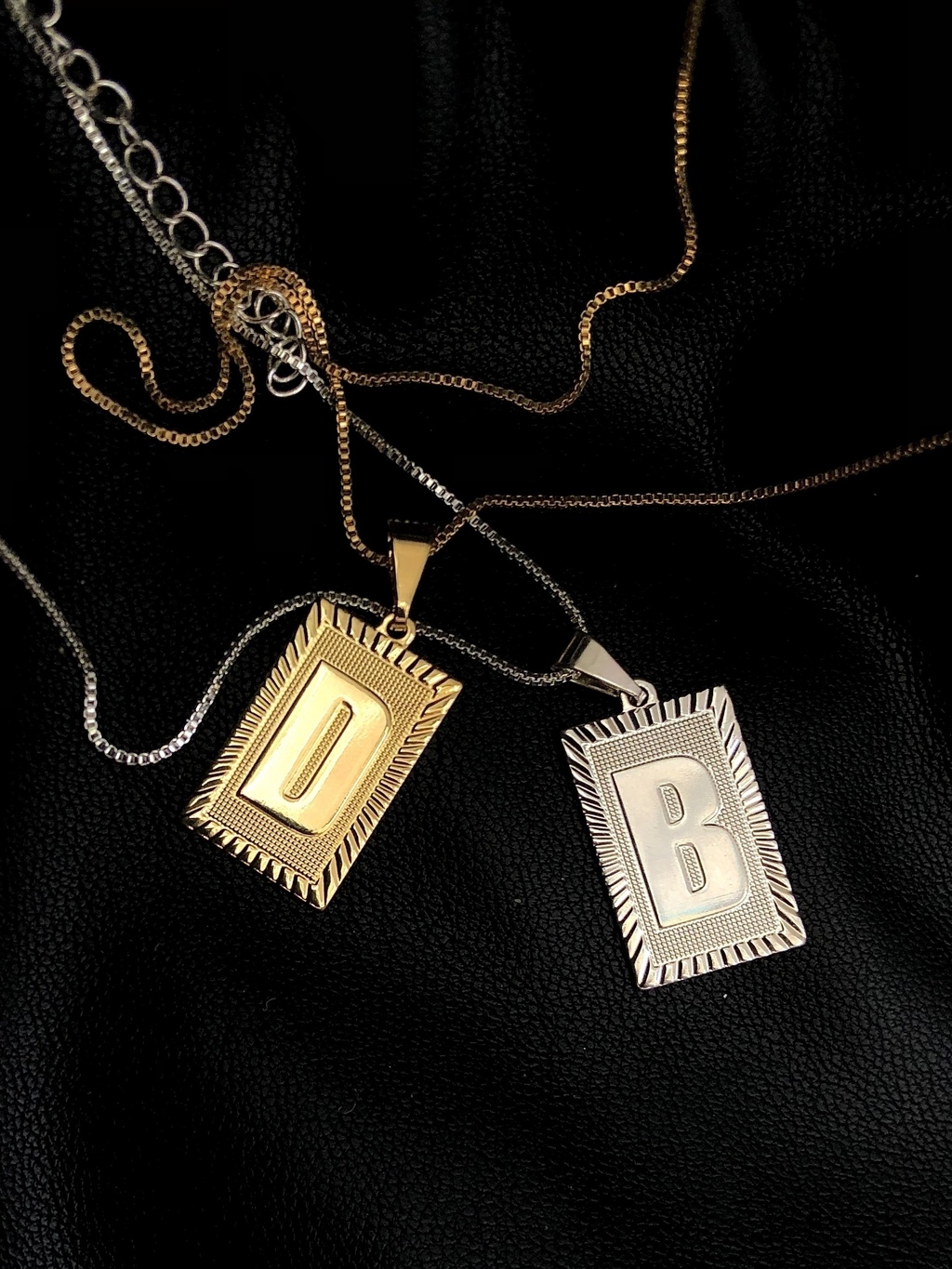 Colar com pingente diamantado e detalhes. Escolha sua inicial.